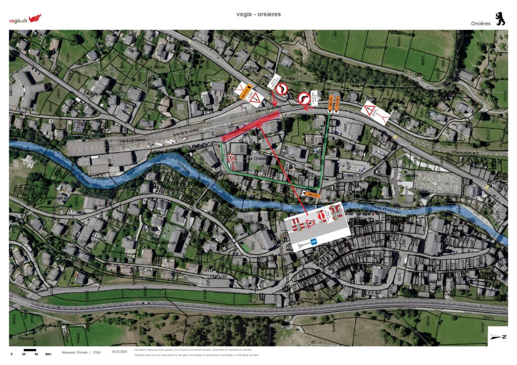 Dans le cadre des travaux réalisés par l’Etat du Valais dans le secteur de la gare à Orsières, nous vous remercions de vous conformer à la signalisation en place dès le 20 avril jusqu’à la fin des travaux (voir plan ci-après).